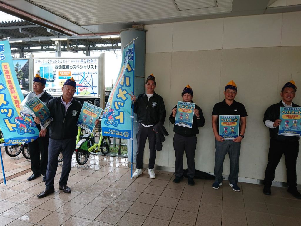 昨年度行われました地区統一アクティビティ「思いやりライト運動」を継承し、9月21日(木)北陸3県一斉「ヘルメット普及運動」を IRいしかわ鉄道東金沢にて金沢東警察署の方々と共に開催しました。