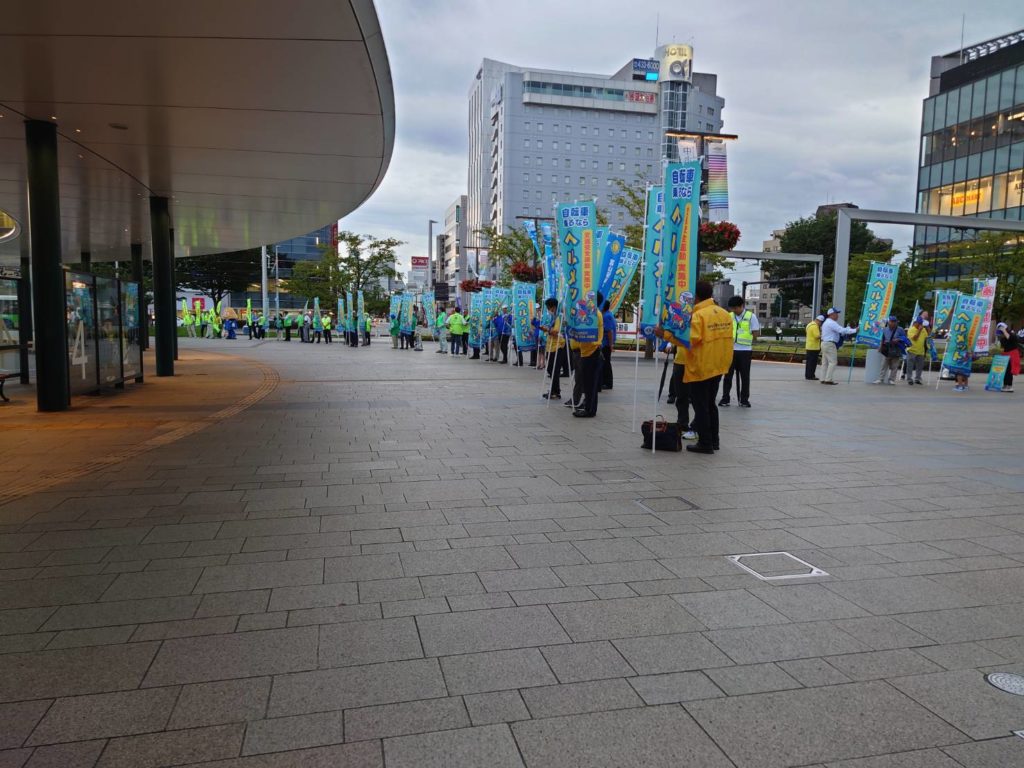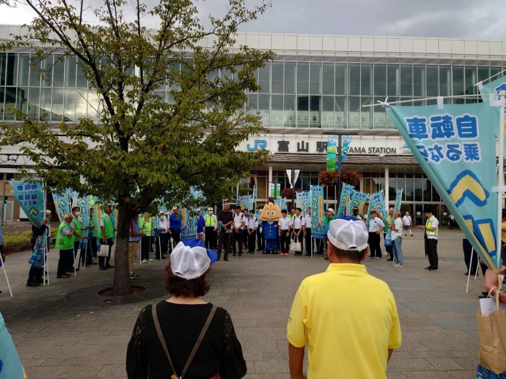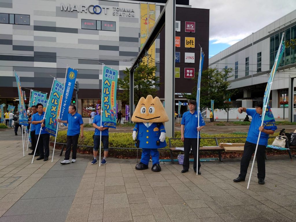 1R2Zは8クラブ合同で実施。 1Z富山LC様、富山雷鳥LC様、中央署職員様、富山県交通安全協議会 富山中央支部様、富山県立中部高校生と富山駅前にてのぼりやパネルを掲げ、通行者に声がけしながらチラシを配布しました。 当日、天候が曇りだった事もあり付近を自転車走行する姿が少ない状況でしたが中高生の下校時刻と重なり多くの中高生、社会人の方へ声がけ出来ました。 ヘルメット着用がより多く定着する活動の一歩になればと感じています。