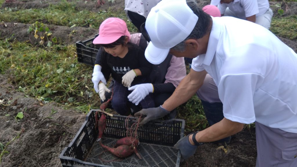 未就学児の発達支援センター「わらび学園」の子どもたちと一緒に、5月に植えたサツマイモの芋掘りをしました。子どもたちは、自分たちで植えたサツマイモがどんな風になっているか興味津々の様子で、実際に芋掘りをして大きなサツマイモが出てきたときには嬉しくて歓声を上げていました。子どもたちの楽しそうな顔を見て、メンバーも元気をもらっていました。