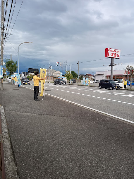 富山みなとライオンズクラブは、国道415号線沿いの、北の森ショッピングセンター様前で、のぼり旗を使い活動しました。
