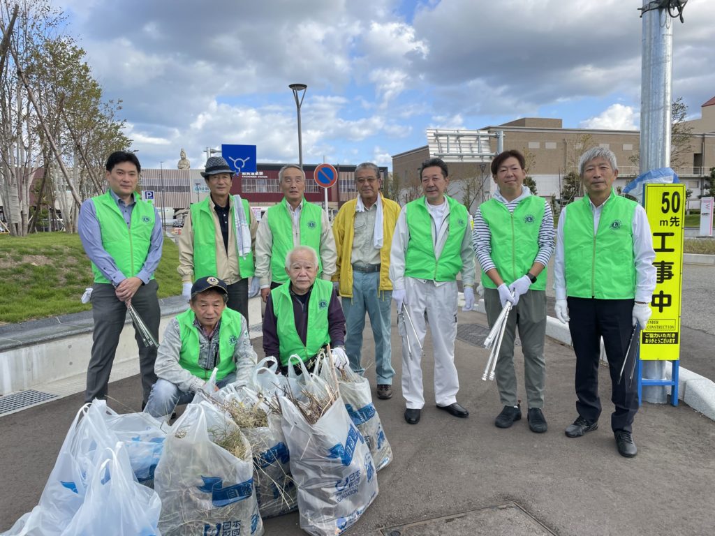 世界ライオンズ奉仕デーの前日ではありますが10/7の7:00~8:00に加賀温泉駅前を清掃しました。
