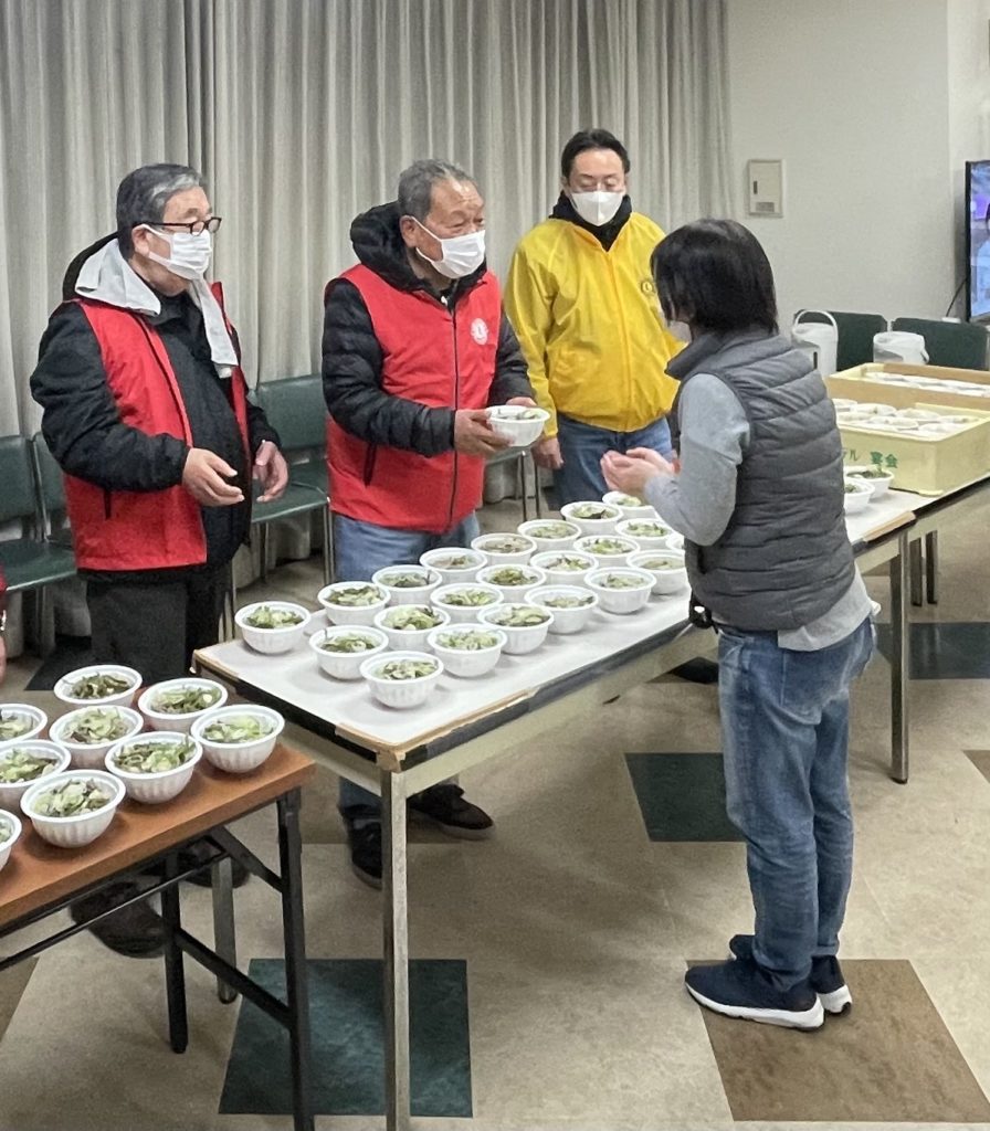 はじめに、令和 6 年能登半島地震で犠牲となられた方々、御家族 の皆様に謹んでお悔やみを申し上げるとともに、被災された多くの 皆様に心よりお見舞いを申し上げます。 本日、334-E地区有志一同で、「令和6年能登半島地震」による1.5次避難所へ炊き出しに行って参りました。今回、御提供させて頂いたのは「信州蕎麦」250食「五目ご飯」250食 そして「野沢菜」最後にお菓子を・・少々・・ 当日のご提供させて頂いた時間帯の気温が6°しかなく大変寒い中、有志一同頑張って熱々のお蕎麦を作らさせて頂き、被災された方々並びに避難所で懸命にボランティアをして頂いてる皆様方にも召し上がって頂きました。中にはお代わりをされた方もおられ、美味しく召し上がって頂けたのではないかと思います。 急遽、334複合地区ガバナー協議会議長 L.戸 祭 宏 樹 様並びに334-D地区ガバナー L.小出 進 様にも駆けつけて頂きご尽力して頂きましたこと心より感謝申し上げます。