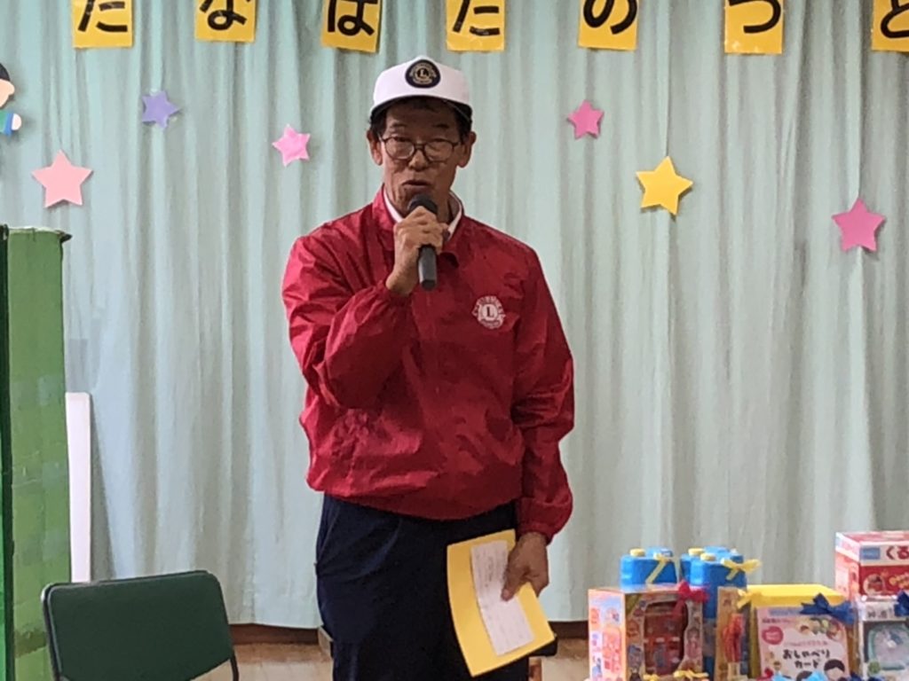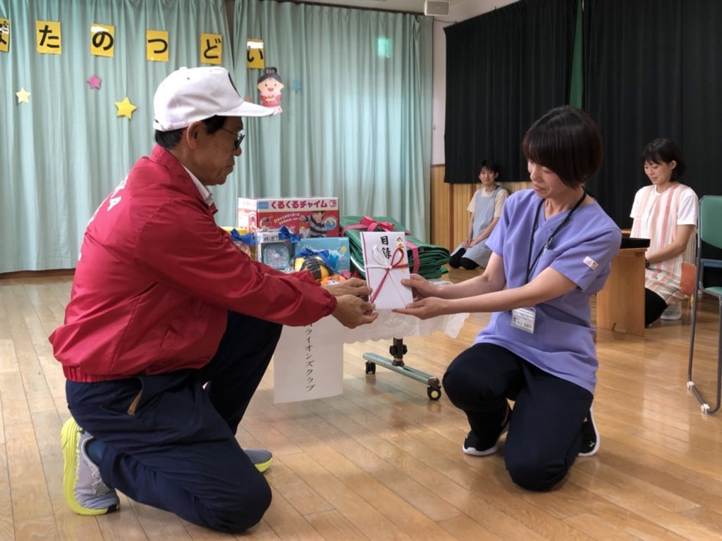2024年7月3日(水) 高岡市きずな子ども発達支援センター 11:00~ 継続50年 1975年以来、高岡市きずな子ども発達支援センター(医療型児童発達支援センター)の児童及び保護者の皆さん方をプール遊びにご招待と教材・遊具のプレゼントをしてきました。今年で50回目となるこのアクティビティは、当初「海水浴」として実施されていましたが、長慶寺の市民プールができてからは、安全面なども考慮し、プール遊びへと姿を変えました。しかし、その長慶寺のプールも廃止され、今ではレクリエーション活動になりました。「天の川をくぐろうゲーム」「シーシーチャオ」というフォークダンスを一緒にしましたよ。結構ハード!知育玩具や教材等の贈呈は例年通り実施致しました。(参加者 園児 35名 保護者 10名)