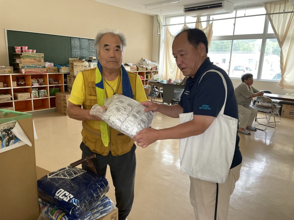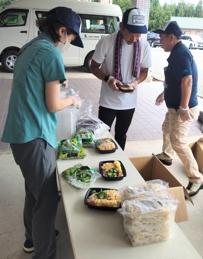 8/4 日、輪島市気勝平町にある介護老人保健施設 百寿苑の一角を お借りし、炊き出しを致しました。今回の食事メニューは新メニュー の「天ぷら冷製うどん」です。 これからの外気温と食中毒を考察した場合に何を提供できるの か?・・・民間の給食事業者と試行錯誤しながら最終的に提案できた のが「冷やした食」でした。今回、お食事を提供させて頂いた場所は 福祉避難所と社会福祉協議会。初めての試みということもあり 70 食 限定でパイロットケース的にさせて頂きました。提供はいつも 11:30 ぐらいを目処に入りますが、10:00 過ぎくらいから近所の 人が集まってきて「今日、何を作ってるの?何時ごろ取りに来ればい い?」と、いつもの何気ない会話ですが「今回はテスト的に作ってい るので・・・すいません。また次回お届けさせて頂きます・・」と言 うやりとりが 11:30 ぐらいまで続き、まだまだ支援が必要と感じさ せる場面・会話が多数ありました。当日も前回同様、「夏場での炊き 出し」ミィーティングから始まり炊き出しをスタート。少人数での現 場でしたが、334MD アラートの吉田委員長・櫻井班長並びに一宮 東 LC の小川会長も参加して頂きスムーズに支援活動を行うことが できました。また今回は日本赤十字看護大学大学院の修士生 2 人・ ノンライオン 2 人・金沢菊水 LC3 人の方々にも参して頂き、皆様 方にもご尽力して頂きましたこと感謝致します。 最後に 334MD から「トイレ凝固剤」を珠洲市若山小中学校在宅避 難の方々にお持ちして頂きましたことも重ねてお礼申し上げます。