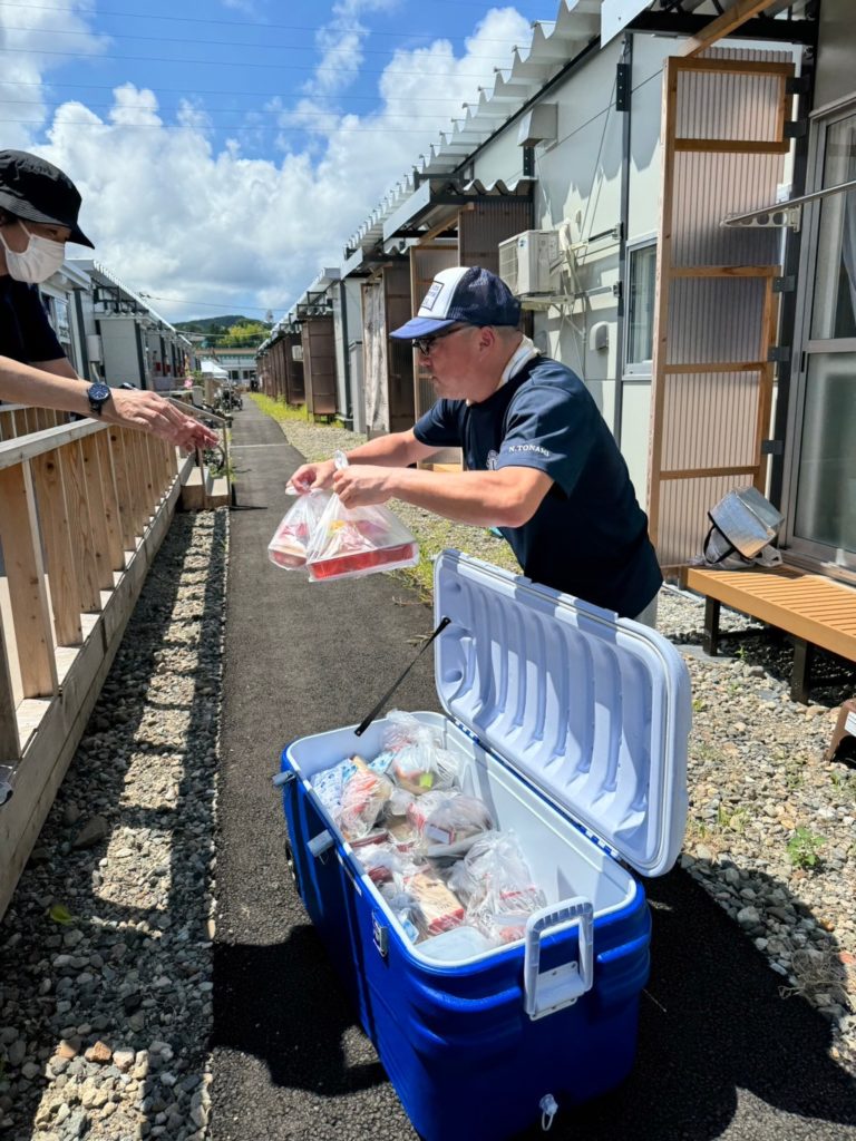 8月10日輪島市応急仮設住宅 宅田町第2団地の集会場で炊き出しを行いました。