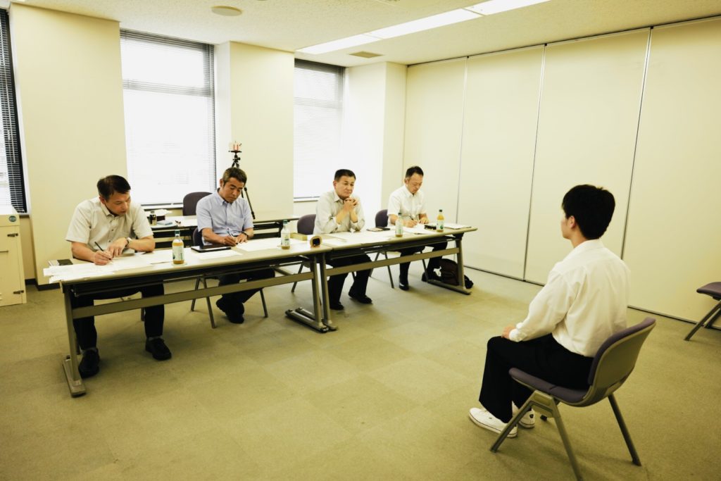 就職希望先にあわせ集団面接も実施。