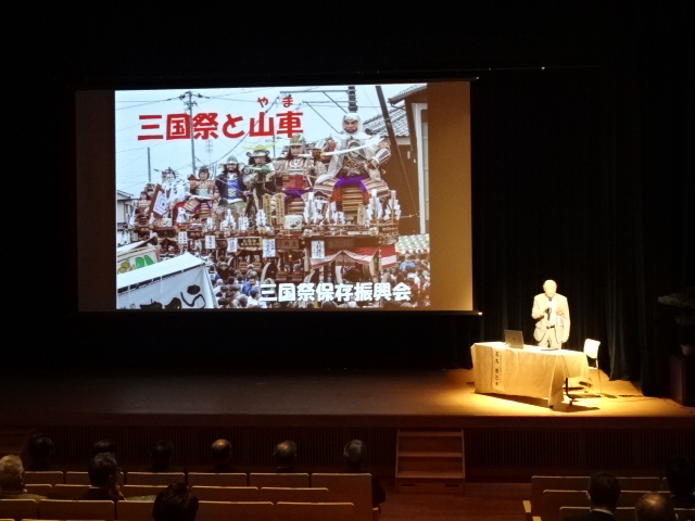 また、当日は三国町祭保存振興会会長より映像を交えながら45分間の講演、その後贈呈式を行いました。
