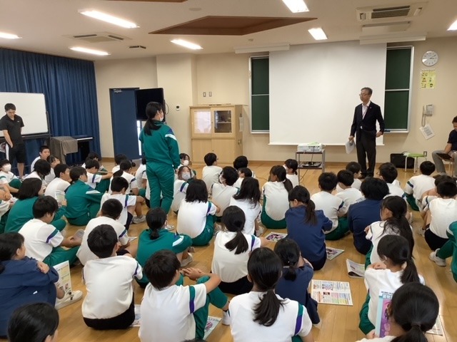 2024年9月10日(火) 射水市立大島小学校6年生 98名を対象に薬物乱用防止教室を開催した。今年度1回目の開催で、今年度は3校開催する予定。薬物乱用防止に関するDVDを見た後に、薬物乱用とはどういった事なのか、乱用による脳・身体への影響、誘いがあってもゼッタイに断る勇気を持って欲しいと説明しました。特に最近は市販薬を過剰摂取する「オーバードーズ」が増えている事も伝えました。子供たちからは、「薬物の怖さがわかりました」「1回でも使用したらダメだとわかった」といった感想がありました。