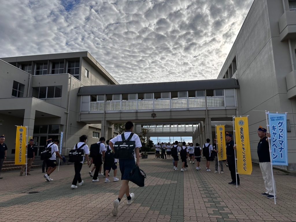 9月11日(水)・12日(木) 金沢市立大徳中学校校門にて挨拶運動を実施