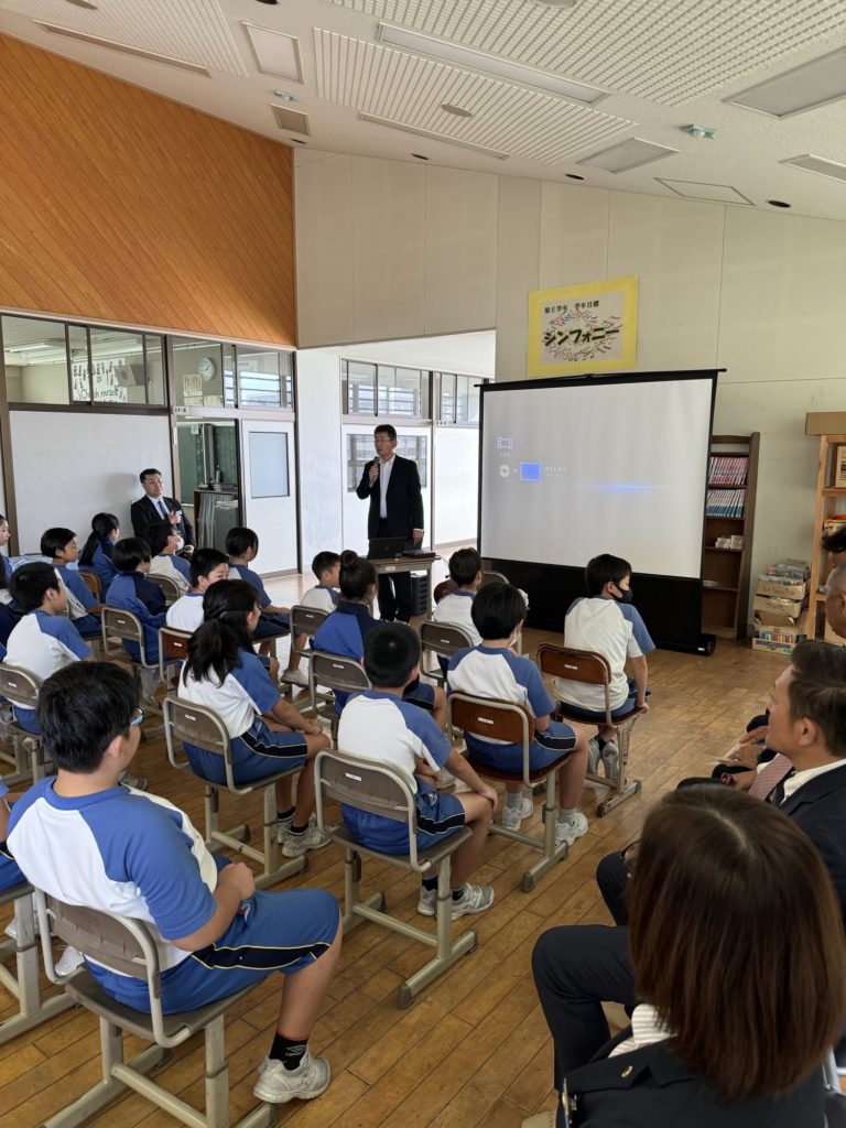 ダメ、ゼッタイのDVD鑑賞後、薬物を乱用するとどうなるのか?といった説明や誘われた時は一人で悩まず、家族や先生、病院などでも相談できるので、断る強い意志と勇気を持って下さいと伝えました。最後に参加者全員で「薬物乱用はダメ、ゼッタイ」を三唱し、会場に元気な声が響き渡りました。