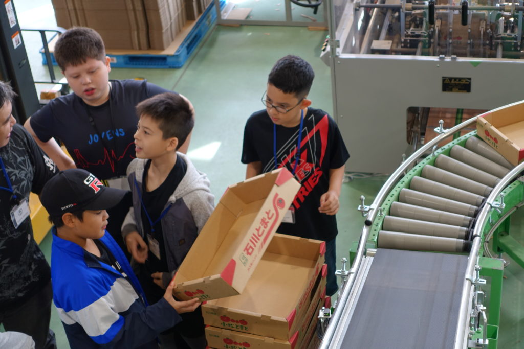 今回が第1回目のバスツアーには、ブラジル、マレーシア、パキスタン、インドネシア、中国出身の小学生計15人が参加しました。野菜のオートメーション集出荷場、航空機展示場、大型建機展示場、北陸新幹線乗車、老舗温泉旅館、科学技術体験施設などを巡り、地元の魅力を感じてもらいました。
