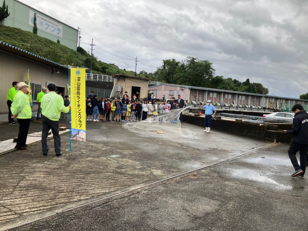 更に、組合員からは実際に投網でサケを捕まえる様子も実演して見せ、これが一番子供たちに受けていました。