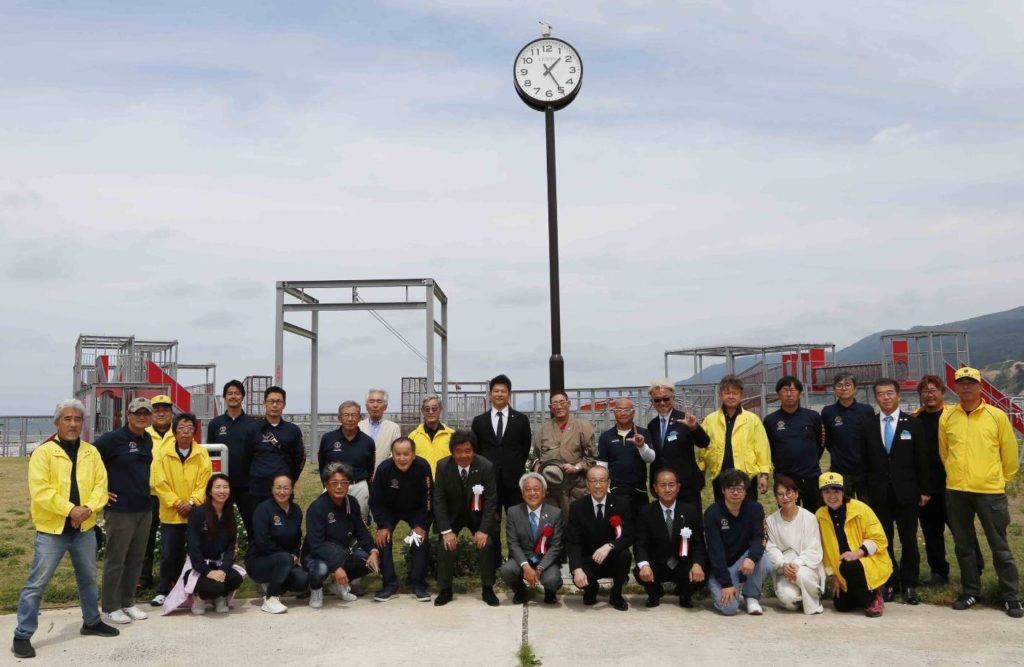 昨年の発災以来、様々の支援を頂いている330-C地区から輪島マリンタウン子供広場 に時計台を寄贈され、来賓に坂口輪島市長、330-C地区猪野塚ガバナーを招き除幕式を行いました。