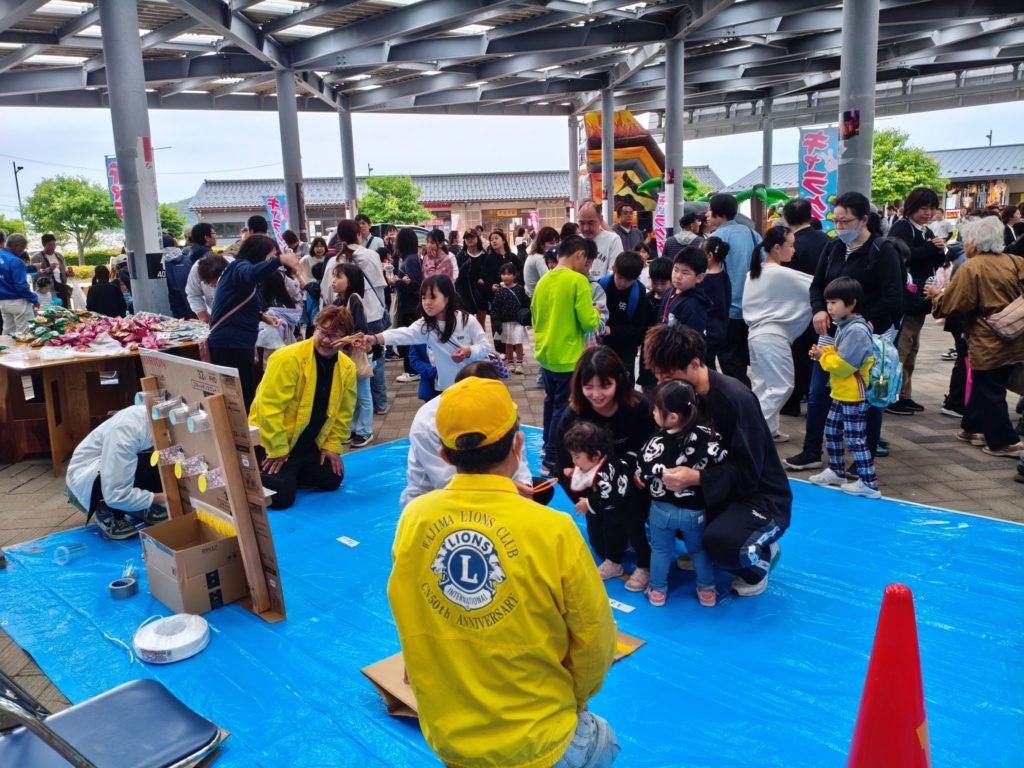 翌24日に輪島マリンタウン大テントイベント会場にてライオンズフェスを行いました。建物解体工事や仮設住宅建設 により子供達の遊び場が少なくなっていく現状を踏まえ、一日でも楽しんで頂ければと願いで開催いたしました。