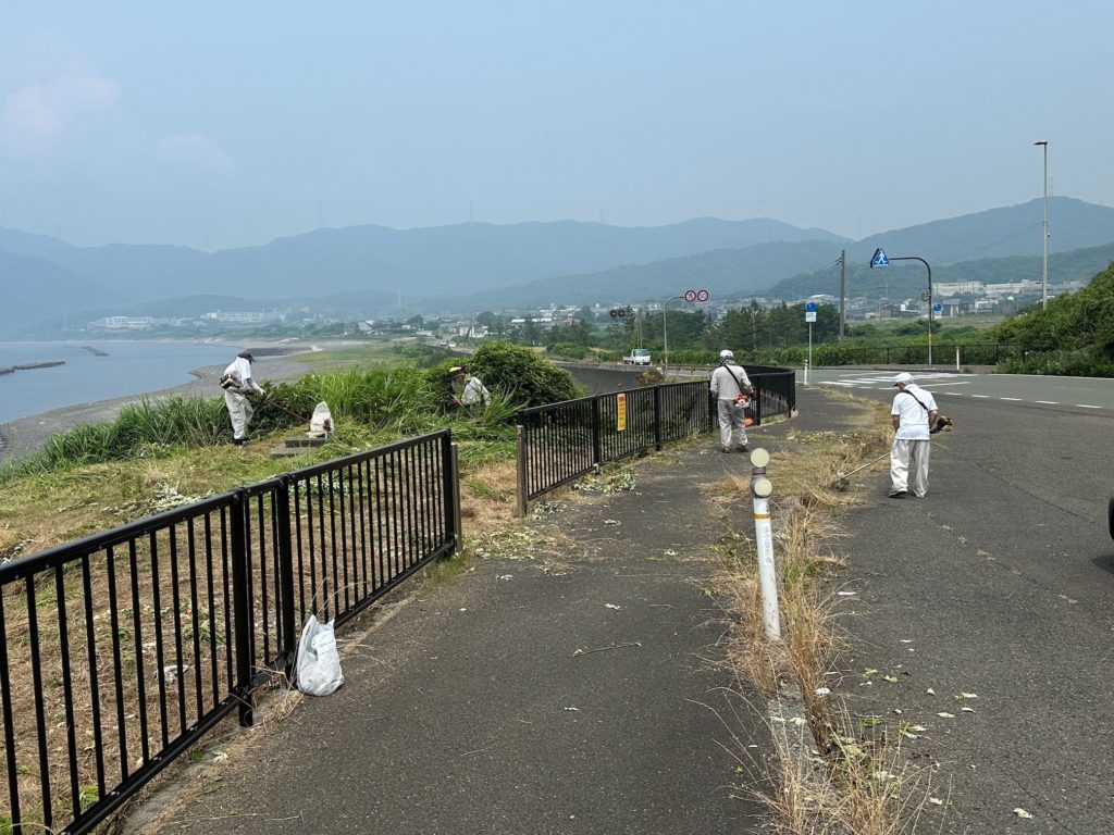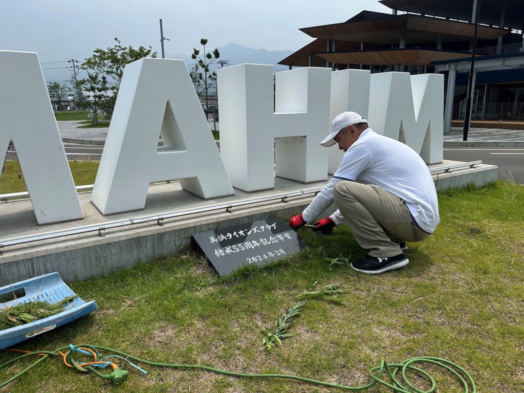 例年7月第1例会で行っている町内数カ所の草刈等の作業。今回は周年事業で立てた駅前のMLHAMAモニュメント周辺の清掃も行った。暑い中、会員は大量の汗を流しながらも今年度の初事業を無事終えることが出来た。