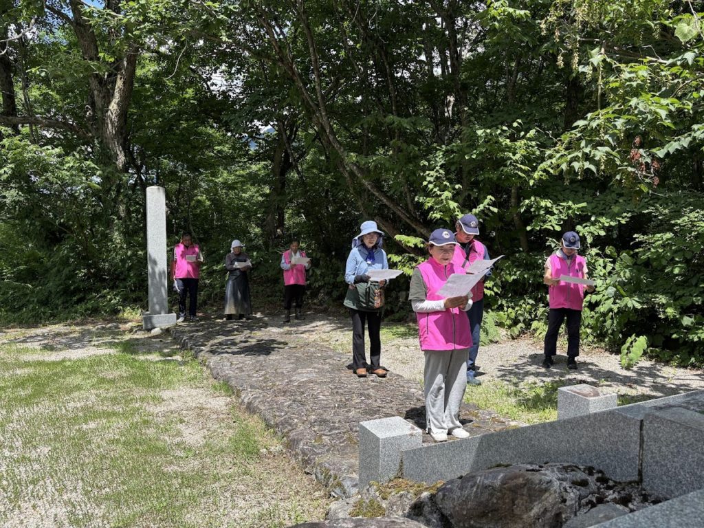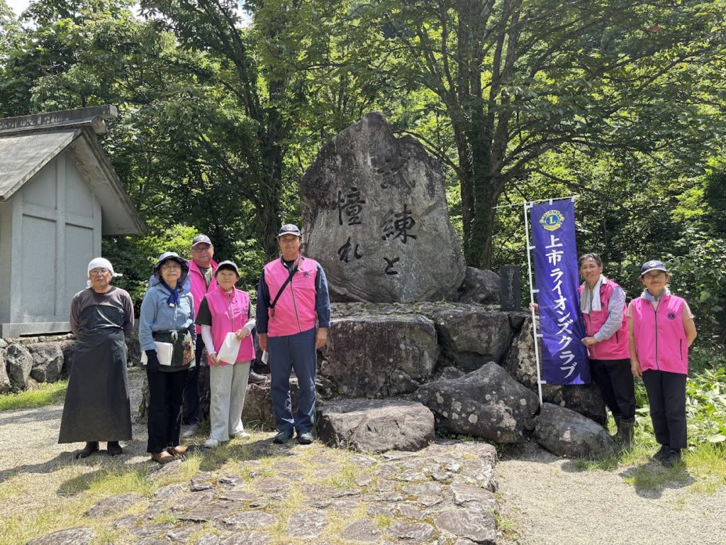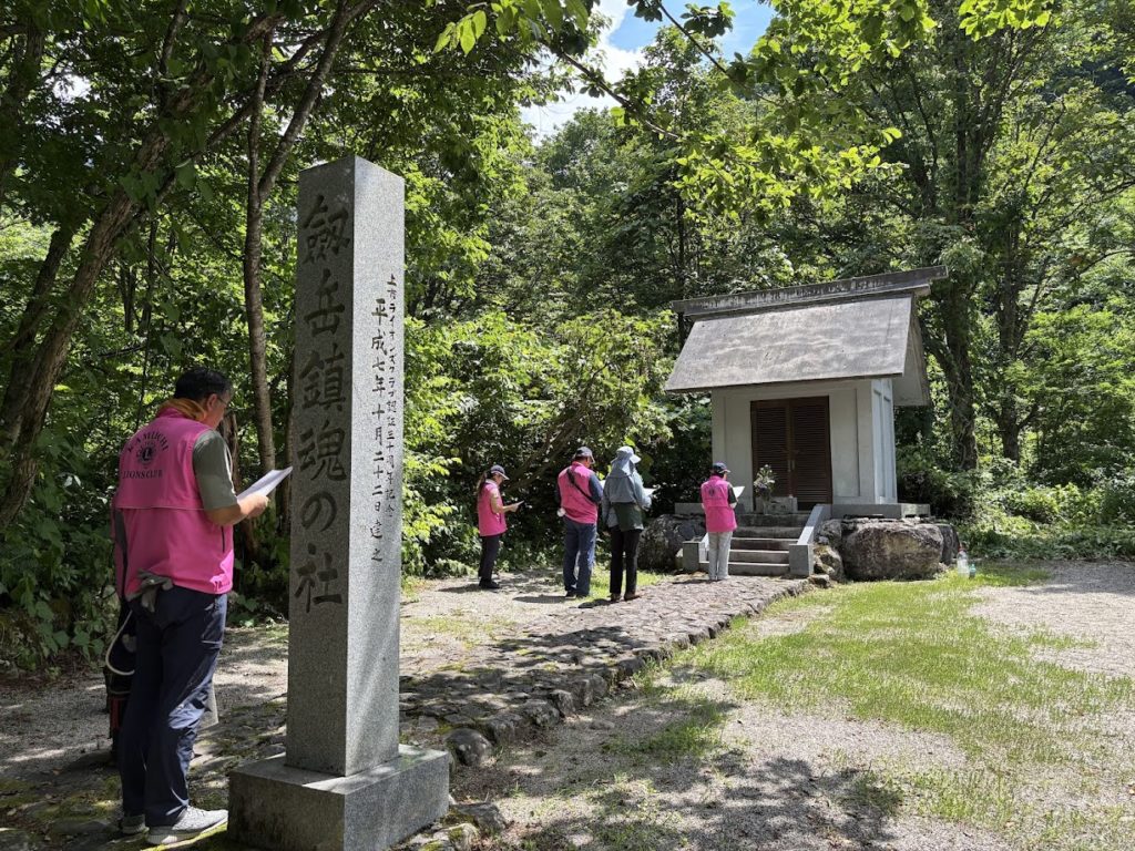 上市ライオンズクラブでは、毎年「馬場島環境美化活動および剱岳登山者安全祈願・慰霊」を行っております。昨年は、悪天候でしたが、今年は見事な青空のもと、会員一同に呼びかけ、馬場島の「試練と憧れ」石碑付近の草刈りおよび清掃活動を行い、環境美化活動後は、剱岳登山者安全祈願および慰霊を行いました。当クラブメンバーの上市町大岩山日石寺L.中田眞法が、般若心経を読み、会員一同それに続いて読経いたしました。毎年馬場島を訪れますが、上市ライオンズクラブにとっても特別な場所です。剱岳登山者の玄関口でもある馬場島にある「試練と憧れ」の石碑は、上市ライオンズクラブ認証10周年記念事業として建てられました。今から50年前のことになります。諸先輩方の想いや願いがこもったこの場所で、今年度も新たなスタートとなりました。