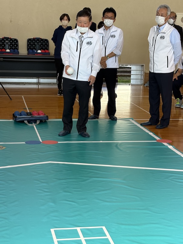ボッチャ道具一式を贈呈し、その後メンバーと生徒の皆様と交流試合を開催致しました。