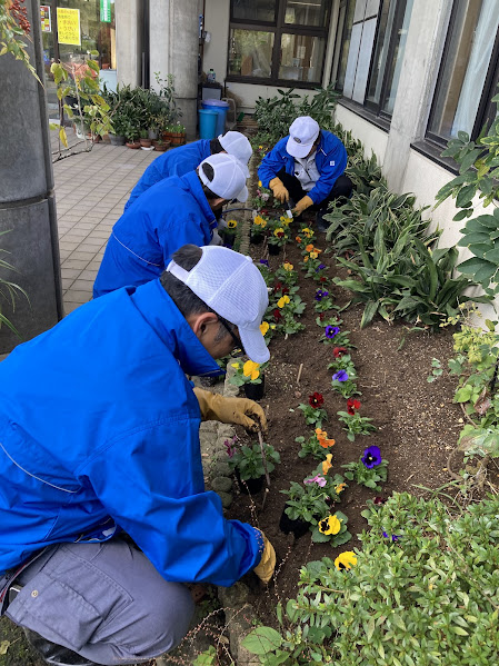季節ごとに色とりどりの花の苗を植え、お年寄りや地域住人のこころの安らぎにしていただきたい当クラブが造成した市内の特養人ホーム『はまなす苑』及び『すわ苑』の花壇で夏に向けてと冬に向けての花苗を年2回植え替え作業を行っています。