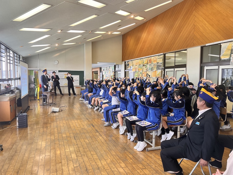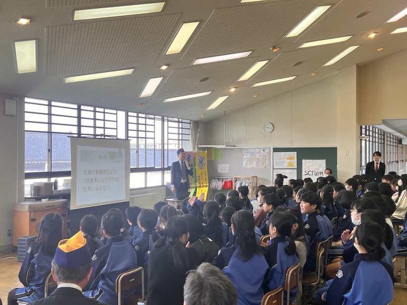 高岡市立下関小学校にて6年生を対象に薬物乱用防止教室を開催いたしました。 SNSの普及などで近年では小学生でも薬物が簡単に手に入ってしまうようになりました。身近にせまる薬物から子供たちを守るため、学校や地域における薬物乱用防止啓発活動を行い、青少年の健全育成に寄与することを目的として毎年開催しています。今回はDVDで薬物乱用の危険性を学んだ後、クイズを実施し全問正解者、成績優秀者へ賞品を渡しました。
