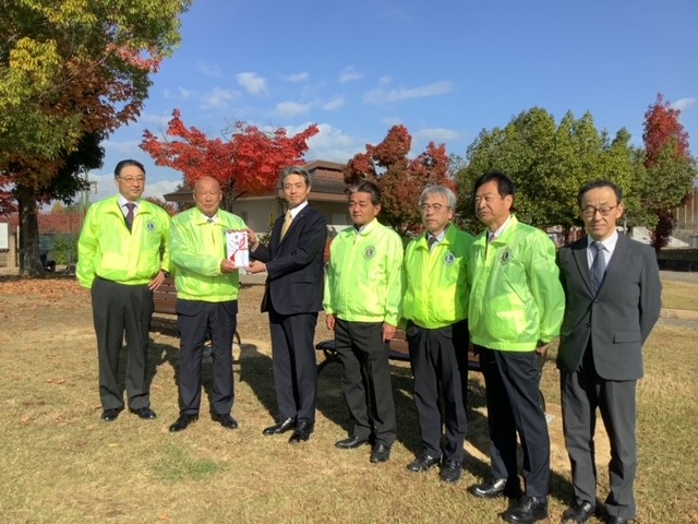 参加者 贈呈者 射水市 夏野元志市長、射水市都市整備課 課長、他2名 小杉LC CN60周年記念 大会委員長L.坂東 昭 実行委員長L.黒川恒至 記念事業部長L.小林雅人 小杉LC 会長L.大亀文雄 幹事L.後 一朗 会計L.池田善揮