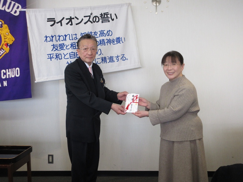 当クラブ2月第1例会時に贈呈式を行い、会長より同事業所理事長へ目録を手渡しました。会食後、理事長より子ども一人一人の発達段階に応じたプログラムの紹介や現場での様子をご説明いただきました。