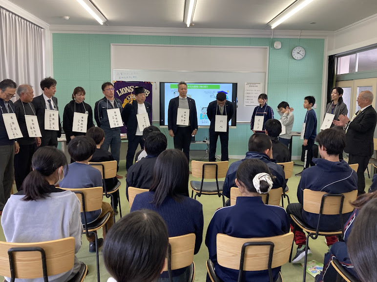 メンバー10名と先生2人、児童3人とで寸劇をし、メンバーで作った電子紙芝居を上映しました。