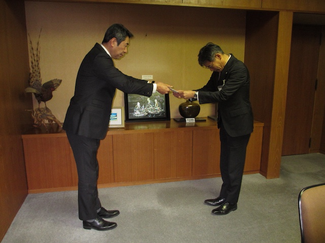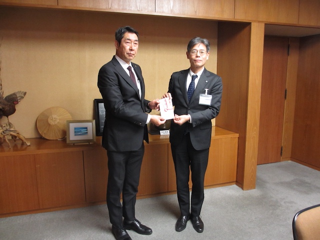 第46回越中万葉かるた大会会場での震災復興チャリティ募金を 高岡市へ寄付してまいりました。