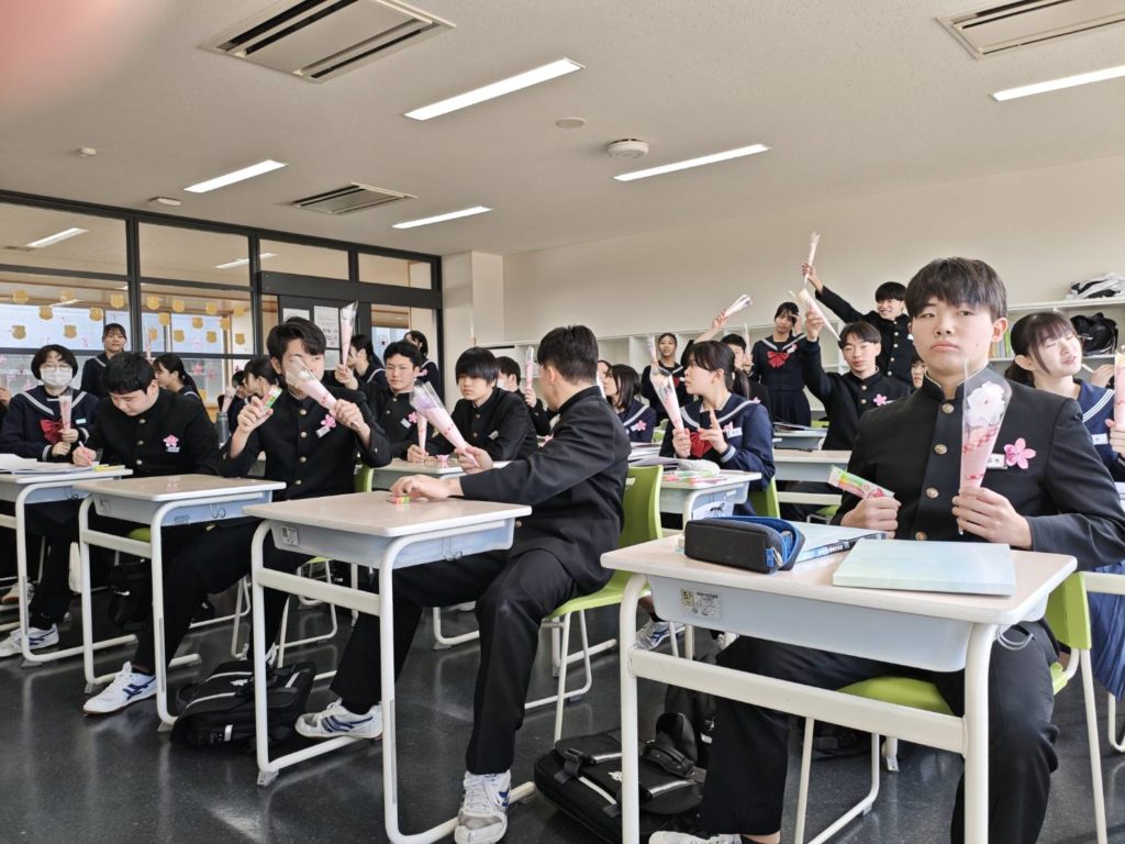 本事業は、福井イーストライオンズクラブによる能登半島地震被災地支援の一環として実施した青少年交流・支援事業である。福井市立森田中学校の「卒業生を送る会」に合わせ、同校2年生が不要となった布を再利用し手作りの花束を制作した。制作にあたっては、資源の再利用を通じて環境意識を高めるとともに、被災地への思いやりの心を育むことを目的とした。完成した花束は、福井イーストライオンズクラブ会員が石川県輪島市を訪問し、・輪島市立輪島中学校・輪島市立門前中学校・輪島市立東陽中学校の3校へ届け、卒業を迎える生徒たちへ贈呈した。贈呈の際には、福井市立森田中学校の生徒たちからの応援メッセージもあわせて届け、震災の影響を受けながらも前向きに歩む能登の生徒たちへ、同世代からの励ましとエールを伝える機会としたまた、本事業を通じて福井と能登の中学生同士の心のつながりを生み、未来を担う青少年が互いを思いやる気持ちを育む機会となった。贈呈を受けた学校関係者からは「被災地に寄り添う気持ちが伝わり、生徒たちの大きな励みになりました」との感謝の言葉をいただいた。また、花束制作に参加した福井市立森田中学校の生徒たちにとっても、被災地の現状を知り、同世代の仲間を思いやる心を育む貴重な学びの機会となった。本事業は、物資の支援だけでなく「心の復興支援」として、地域を越えた青少年の絆を育む意義深い取り組みとなった。